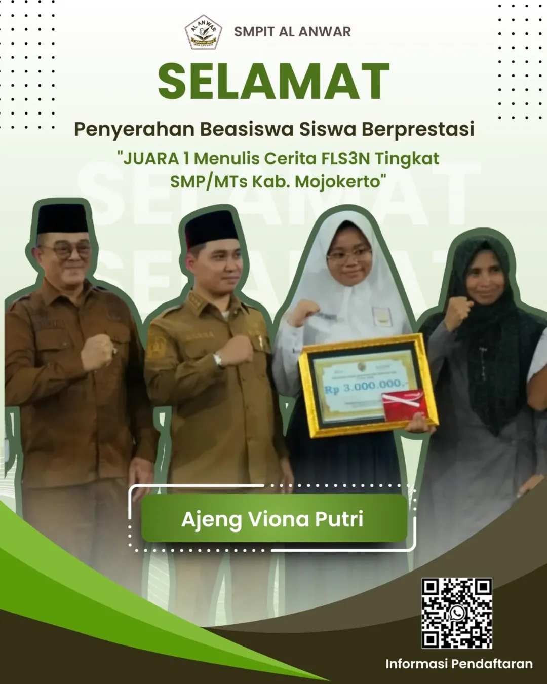 Hari ini, siswa kami mendapatkan kehormatan besar menerima Beasiswa Siswa Berprestasiππ»β¨ Ini adalah buah manis dari kerja keras dan dedikasi yang tak kenal lelah! Selamat atas pencapaian gemilang Juara 1 Menulis Cerita FLS2N Kabupaten Mojokerto! ππ Teruslah berkarya dan menginspirasi! #SiswaBerprestasi #MojokertoHebat #FLS3NKabMojokerto #Beasiswa #JuaraMenulis